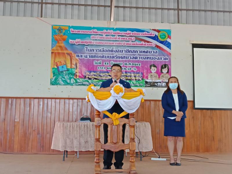 รายละเอียด : โครงการอบรมให้ความรู้เจ้าพนักงานผู้ดำเนินการเลือกตั้ง (จพง.ปน.) และผู้ช่วยคณะกรรมการการเลือกตั้งประจำหน่วยเลือกตั้ง (อสม.) เมื่อวันที่ 23 มีนาคม 2564 ณ หอประชุมเทศบาลตำบลหนองลาด อำเภอเมืองสกลนคร จังหวัดสกลนคร