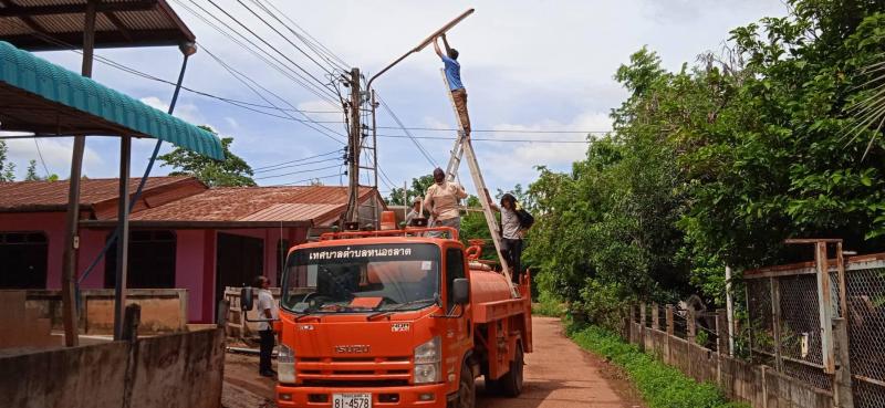 เจ้าหน้าที่รถบรรทุกน้ำ สำนักปลัด พร้อมด้วยเจ้าหน้าที่งานไฟฟ้าสาธารณะ กองช่าง ออกปฏิบัติงานซ่อมแซมไฟฟ้ามุมมืด บริเวณพื้นที่บ้านหนองลาดน้อย หมู่ที่ 6, บ้านหนองลาด หมู่ที่ 7 และบ้านหนองลาดใต้ หมู่ที่ 8