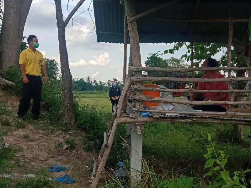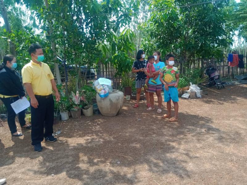 ลงพื้นที่ออกตรวจเยี่ยมและมอบถุงยังชีพ ผู้กักตัวกลุ่มเสี่ยง เพื่อตรวจหาเชื้อโควิด-19 ซึ่งเดินทางมาจากพื้นที่เสี่ยง