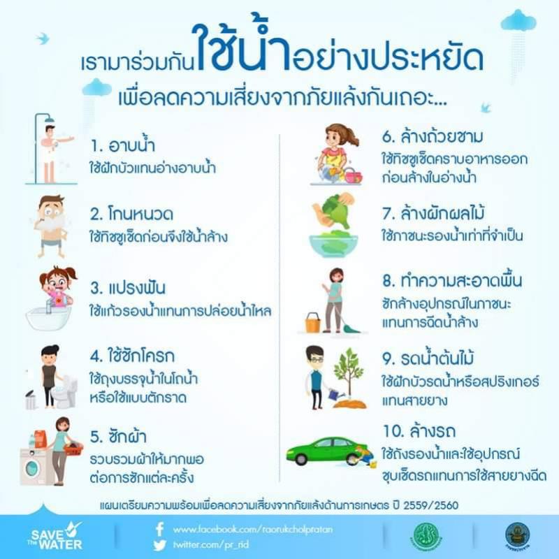 รายละเอียด : น้ำเป็นทรัพยากรสำคัญของโลก เพราะโลกมีปริมาณน้ำมากถึงร้อยละ 98 ในจำนวนนั้นมีเพียงร้อยละ 2.59 เท่านั้นที่เป็นน้ำจืดซึ่งมนุษย์ใช้ประโยชน์ได้โดยตรง เป็นจำนวนน้อยมากเมื่อเทียบกับปริมาณน้ำเค็มในทะเล การอนุรักษ์ทรัพยากรน้ำจึงมีความสำคัญอย่างยิ่ง เพื่อให้ได้น้ำที่มีคุณภาพดีเหมาะแก่การนำไปใช้ประโยชน์ไม่ว่าจะด้านเกษตรกรรม อุตสาหกรรม จนถึงบริโภคอุปโภคในครัวเรือน แนวทางการอนุรักษ์ทรัพยากรน้ำแบ่งตามกิจกรรมมีดังนี้