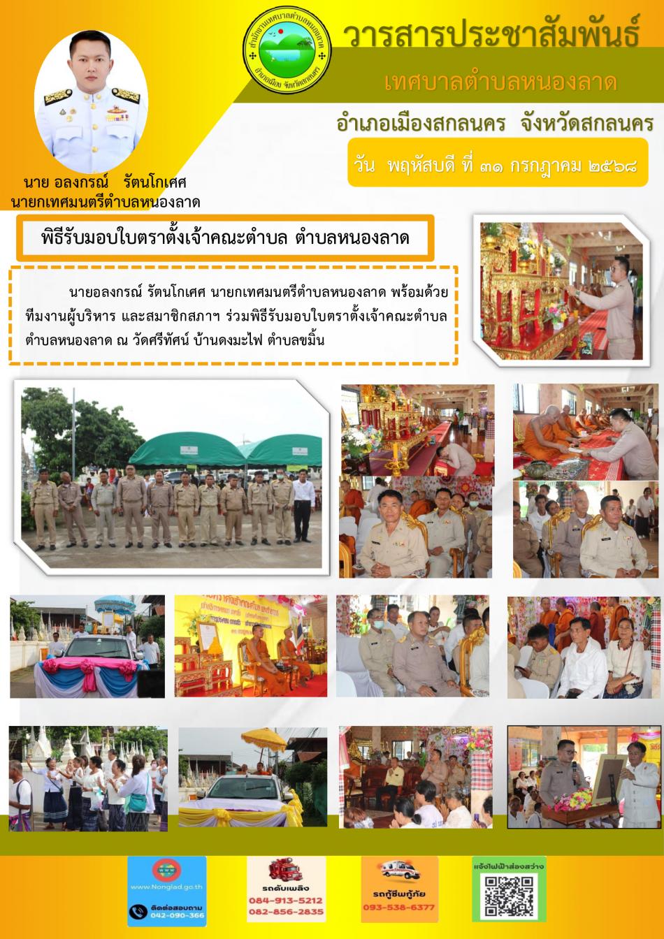 พิธีรับมอบใบตราตั้งเจ้าคณะตำบล ตำบลหนองลาด [31 กรกฎาคม 2568]