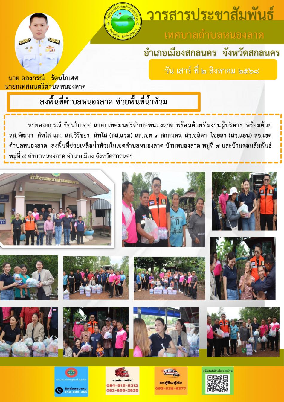นายอลงกรณ์ รัตนโกเศศ นายกเทศบาลตำบลหนองลาด มอบเครื่องอุปโภค บริโภค ช่วยเหลือเยียวยาผู้ประสบอัคคีภัย แก่นางสาร ประนต ชาวบ้านหนองลาด หมู่ที่ 7 ต.หนองลาด อ.เมือง จ.สกลนคร ครับ [26 มิถุนายน 2568]