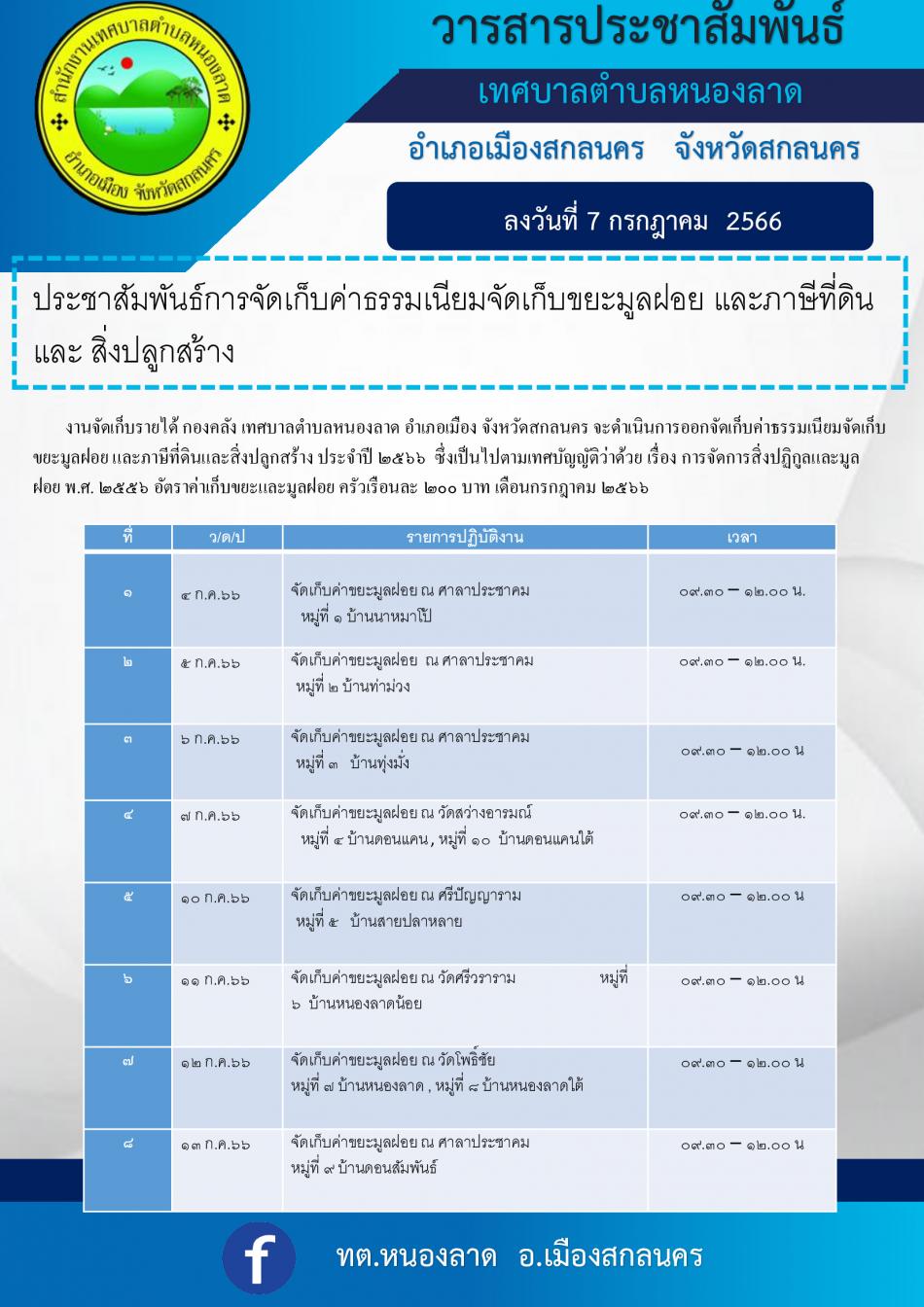 การออกให้บริการจัดเก็บค่าธรรมเนียมขยะมูล และภาษีที่ดินและสิ่งปลูกสร้าง ประจำปีงบประมาณ 2566 [13 กรกฎาคม 2566]