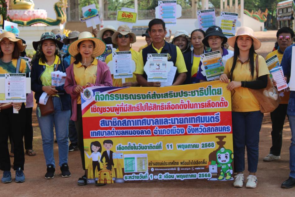 เทศบาลตำบลหนองลาด จัดกิจกรรมรณรงค์ส่งเสริมประชาธิปไตยผู้ที่มีสิทธิไปใช้สิทธิเลือกตั้ง ในการเลือกตั้งสมาชิกสภาเทศบาลและนายกเทศมนตรี เทศบาลตำบลหนองลาด อำเภอเมือง จังหวัดสกลนคร เลือกตั้งในวันอาทิตย์ที่ 11... [1 พฤษภาคม 2568]