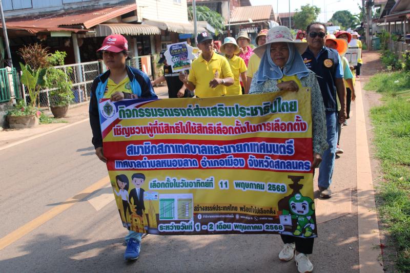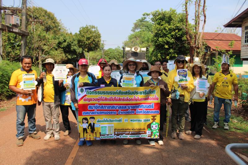 เทศบาลตำบลหนองลาด จัดกิจกรรมรณรงค์ส่งเสริมประชาธิปไตยผู้ที่มีสิทธิไปใช้สิทธิเลือกตั้ง ในการเลือกตั้งสมาชิกสภาเทศบาลและนายกเทศมนตรี เทศบาลตำบลหนองลาด อำเภอเมือง จังหวัดสกลนคร เลือกตั้งในวันอาทิตย์ที่ 11 พฤษภาคม 2568