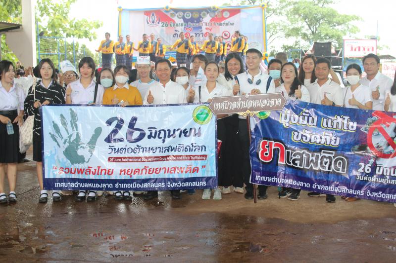 วันจันทร์ ที่ 26 มิถุนายน พ.ศ.2566 เวลา 08.00น. นายธงชัย เล็กอ่อน นายกเทศบาลตำบลหนองลาด พร้อมคณะผู้บริหาร,พนักงานเทศบาลและอสม.ในพื้นที่ตำบลหนองลาด ร่วมกิจกรรมรณรงค์วันต่อต้านยาเสพติดโลกเพื่อรณรงค์ให้ประชาชนในพื้นที่ตระหนักถึงปัญหายาเสพติดในการป้องกันและแก้ไขปัญหายาเสพติด