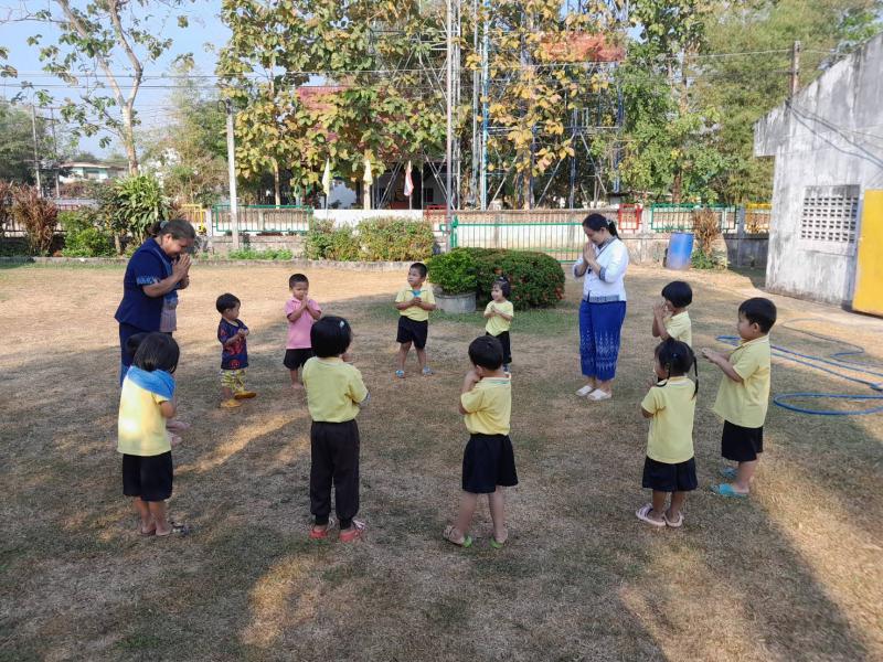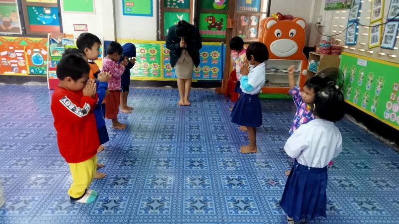 กิจกรรมที่ 1.1.2 (ศพด.) รายงานกิจกรรมหน้าเสาธง การไหว้ การกราบแบบเบญจางคประดิษฐ์